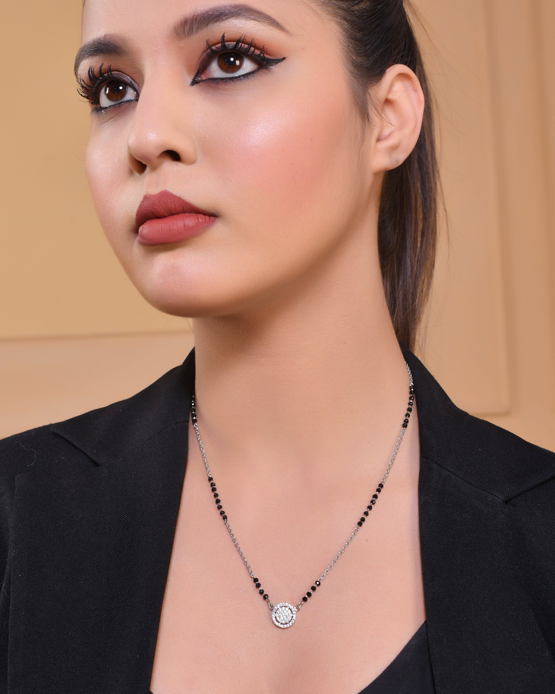 925 Sterling Silver CZ Diamond Mangalsutra Pendant Chain for Women