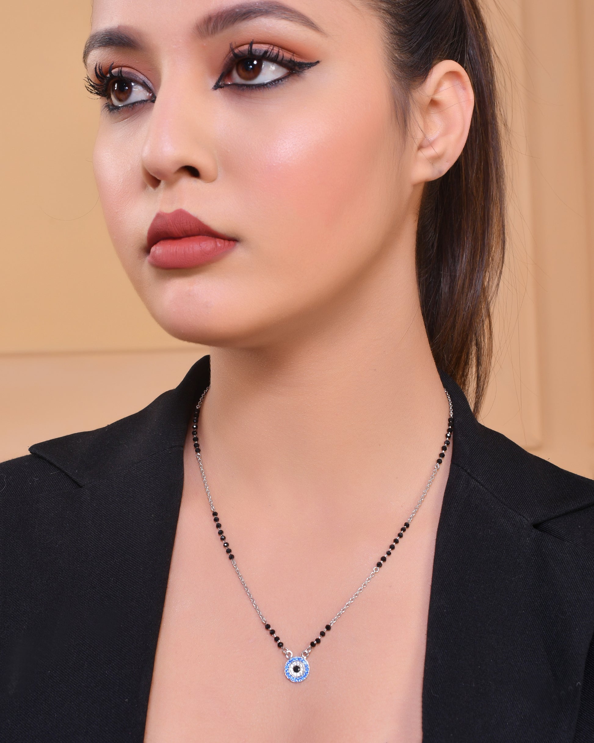 925 Sterling Silver CZ Diamond Evil Eye Mangalsutra Pendant Chain for Women