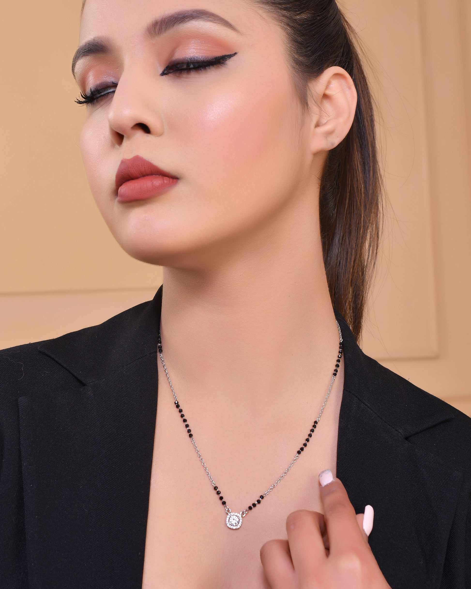 925 Sterling Silver CZ Diamond Mangalsutra Pendant Chain for Women