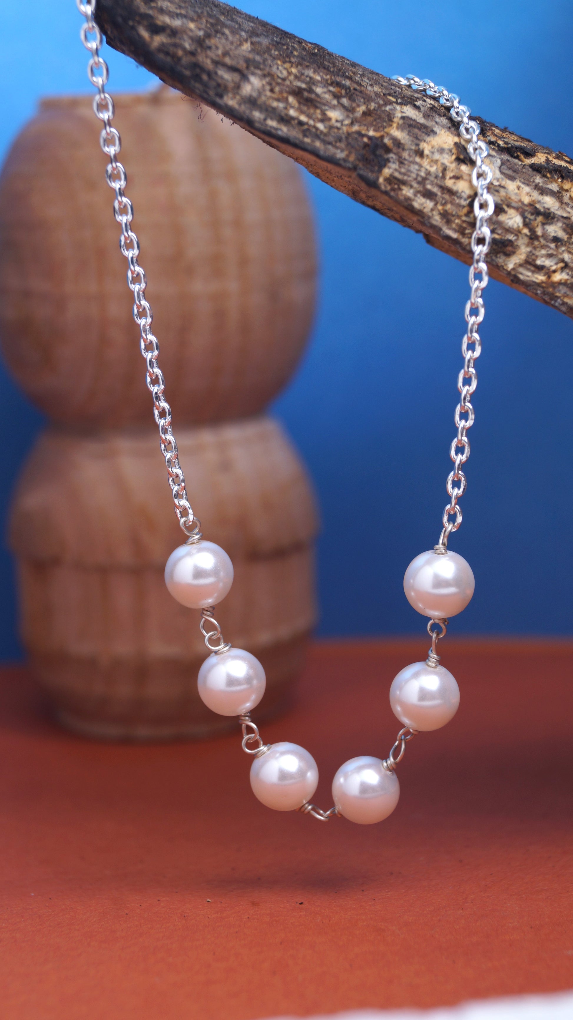 925 Sterling Silver Light Weight Pearl Necklace Chain for Women & Girls