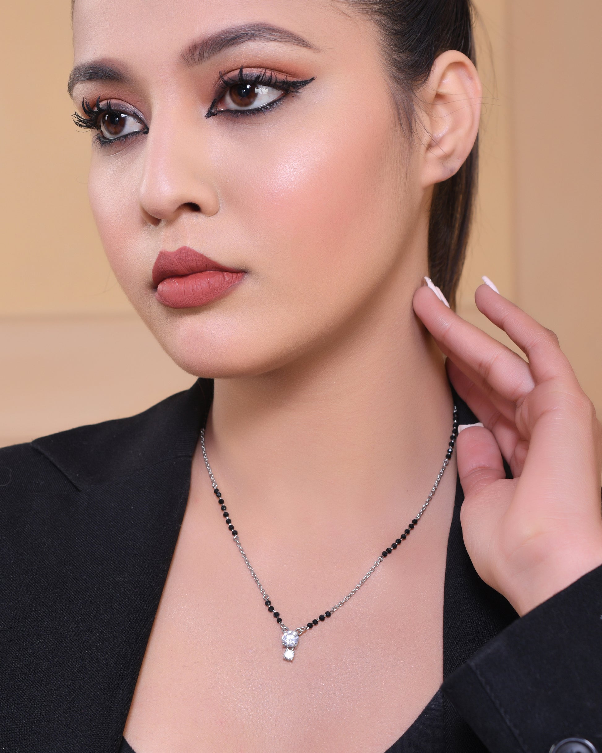 Sterling Silver Mangalsutra Tanmaniya designed for women. Crafted with precision, this piece blends timeless elegance with cultural grace. Shop now to adorn yourself with a symbol of commitment and style.