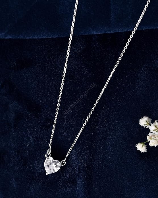 925 Sterling Silver Minimalist Heart Pendant Chain Necklace for Women and Girls
