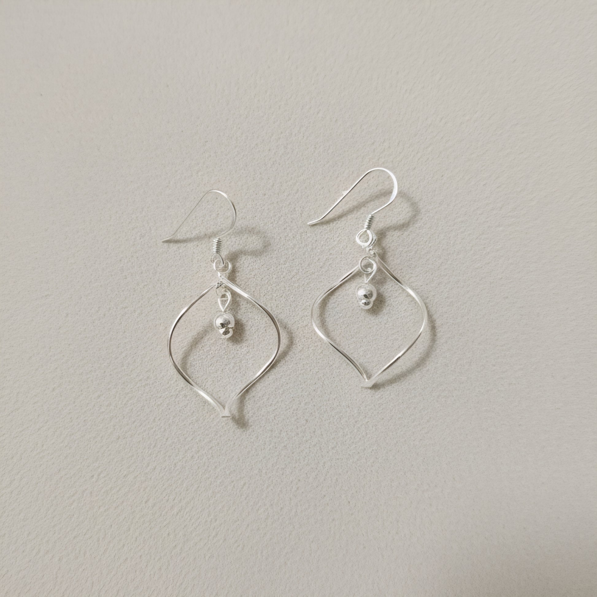 Elegant Diamond Shape Design: Features a sleek twisted diamond outline with a single dangling silver bead for a refined, modern look.