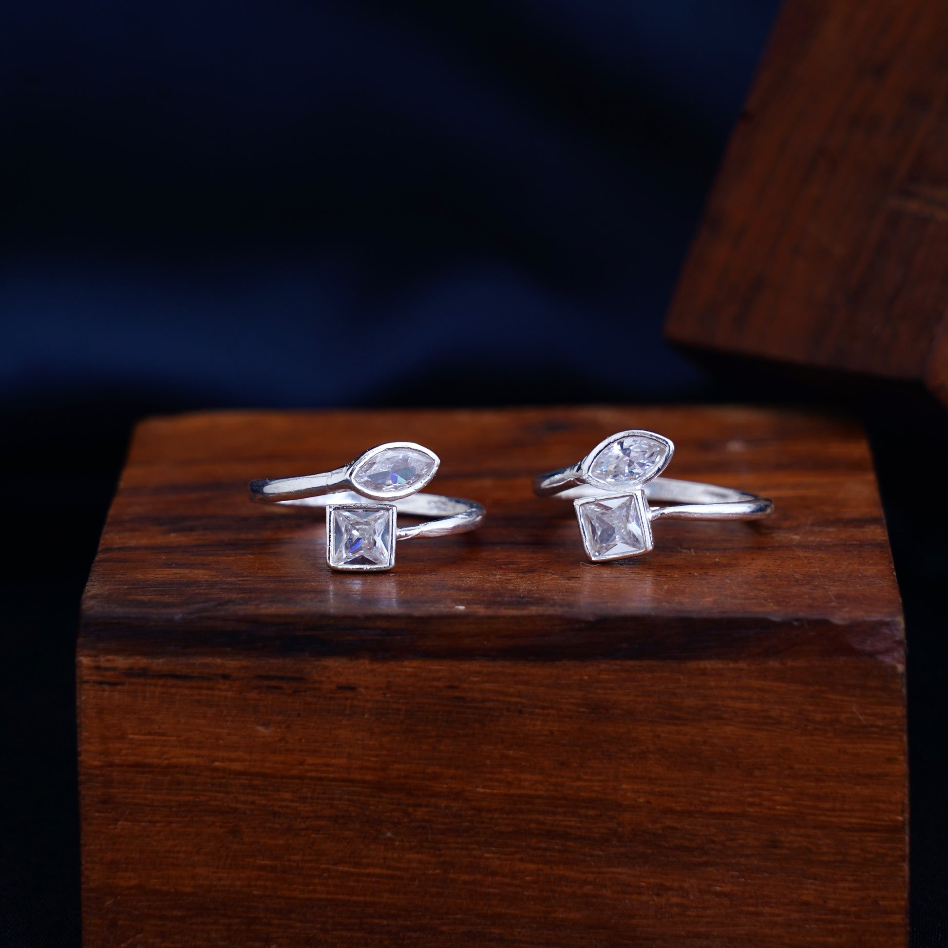925 Sterling Silver White CZ Toe Rings For Women (Free Size)