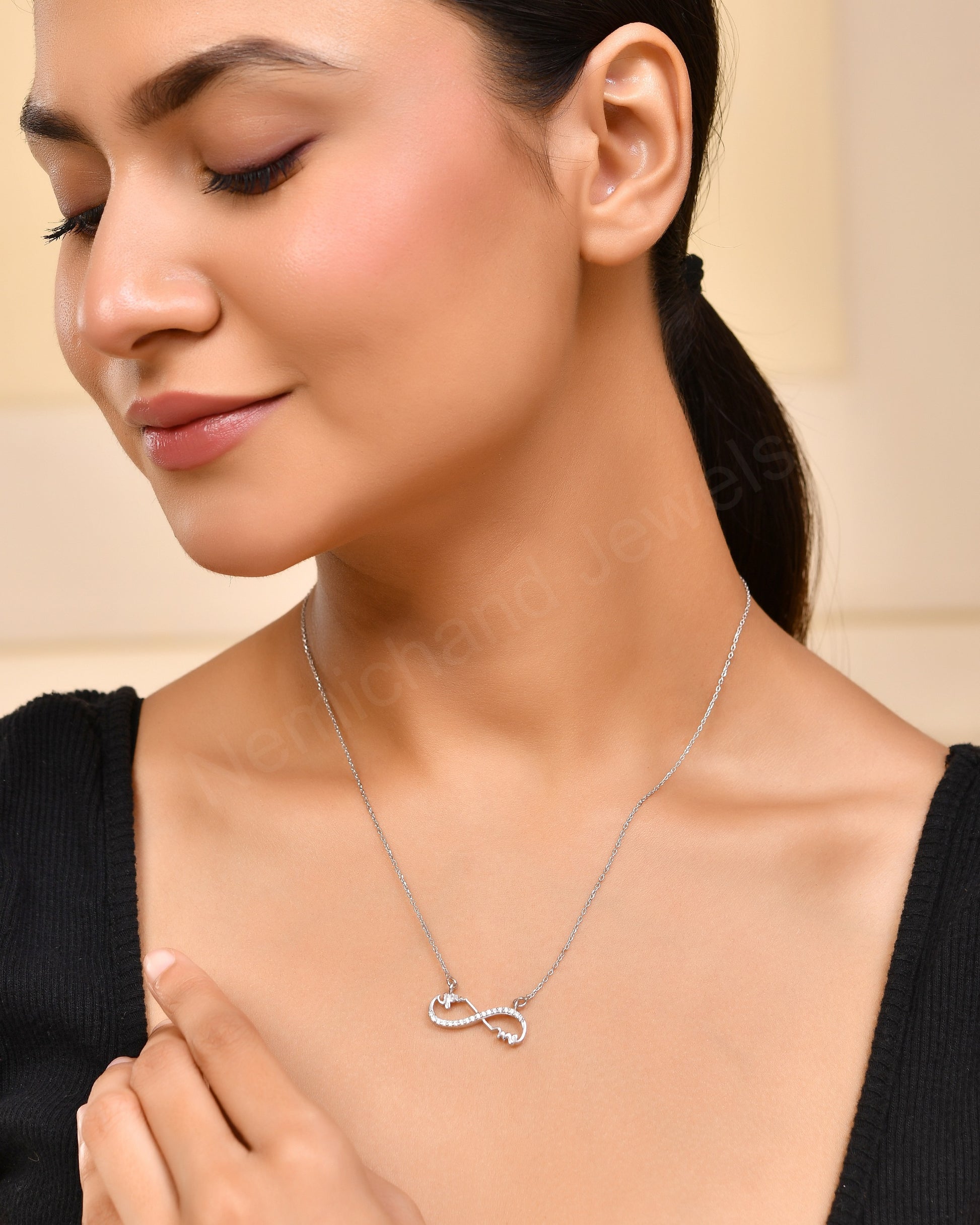 925 Sterling Silver You & Me Infinity Pendant Chain Necklace for Women and Girls